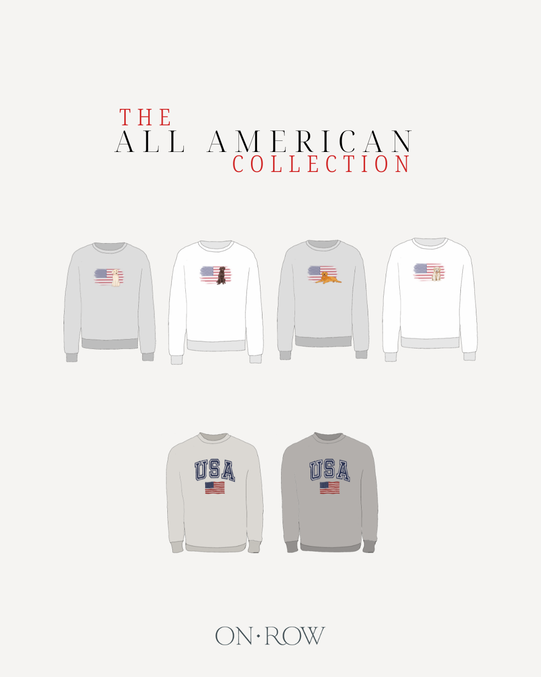 Introducing our All American Collection showcasing the most beloved American dogs and the coziest sweatshirts, ideal for all seasons.