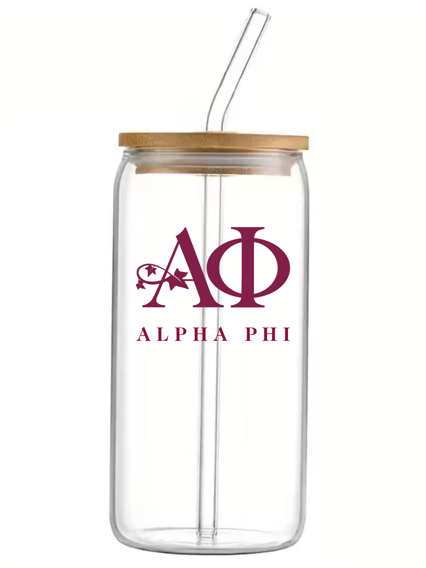 Introducing the Alpha Phi Glass Cup - the perfect accessory for any sorority member!