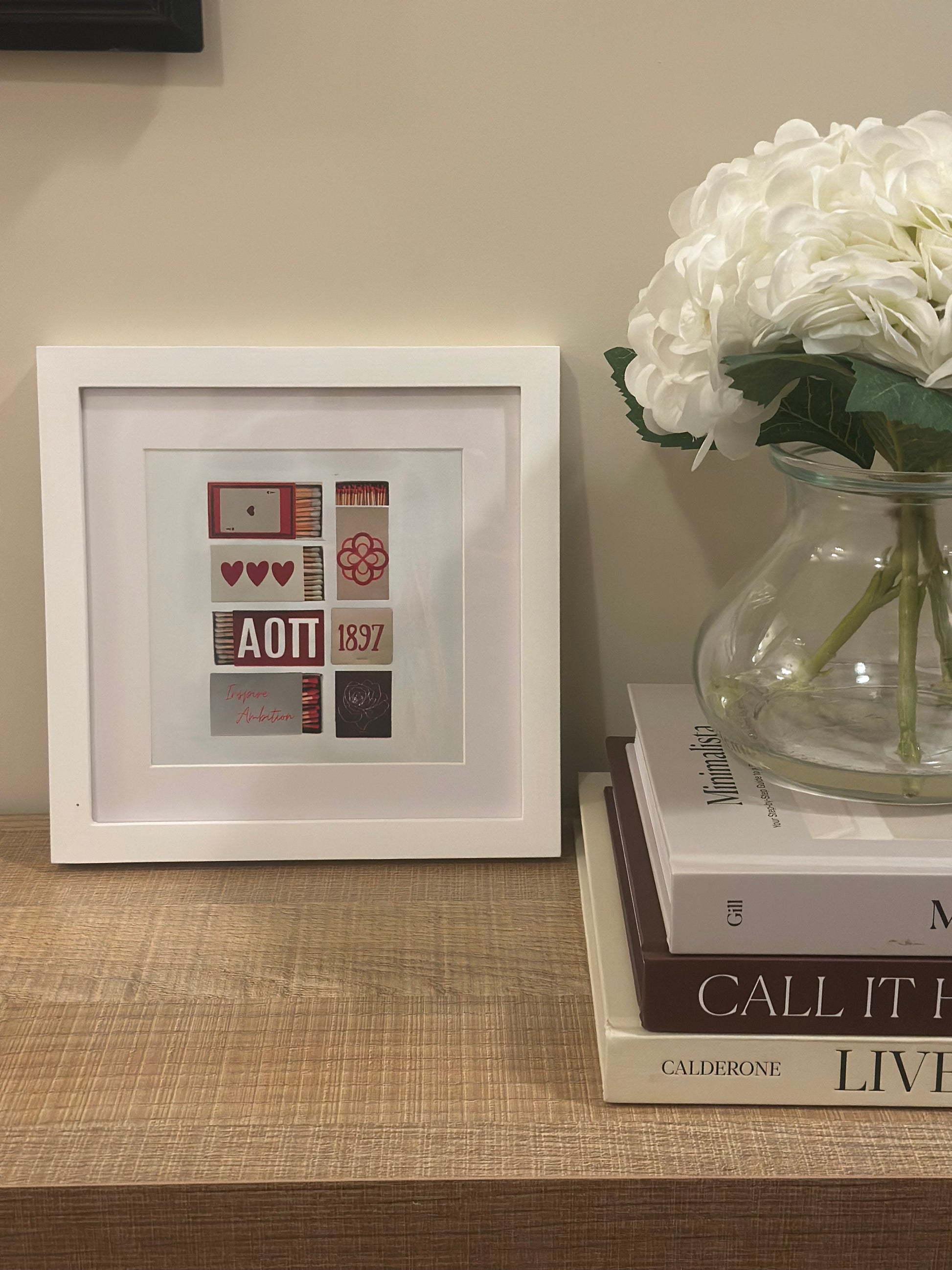 The Alpha Omicron Pi Matchbox Print features a distinctive 8x8 frame design that highlights the sorority’s iconic symbols with precision and clarity. Crafted for those who appreciate refined collegiate art, this print offers a balanced blend of tradition and modern aesthetics, making it an ideal piece for display in any Alpha Omicron Pi member’s collection or living space. Its compact size ensures versatility, while the expert design captures the essence of the sorority’s heritage.
