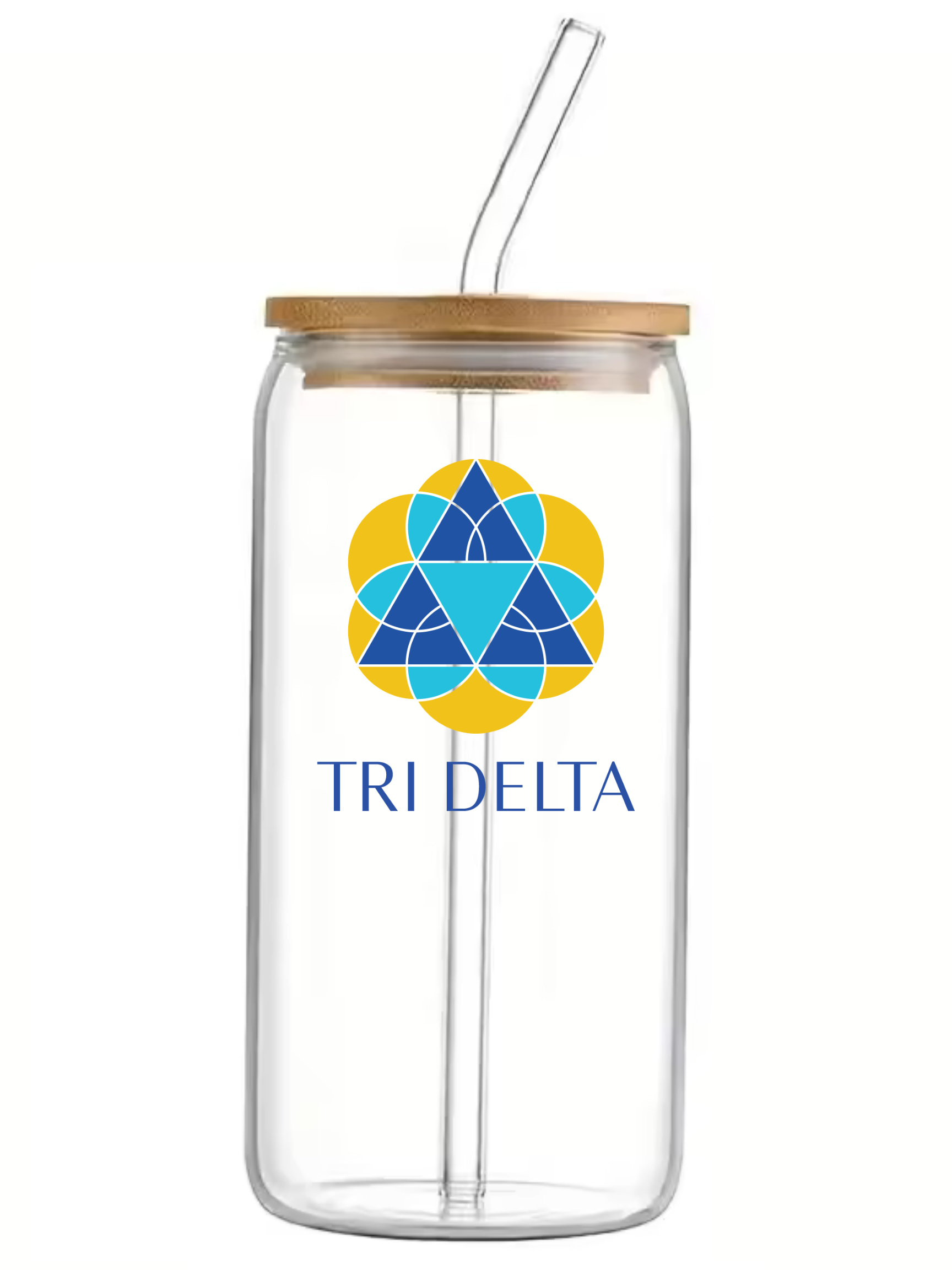 Introducing the Delta Delta Delta Glass Cup - the perfect accessory for any sorority member!