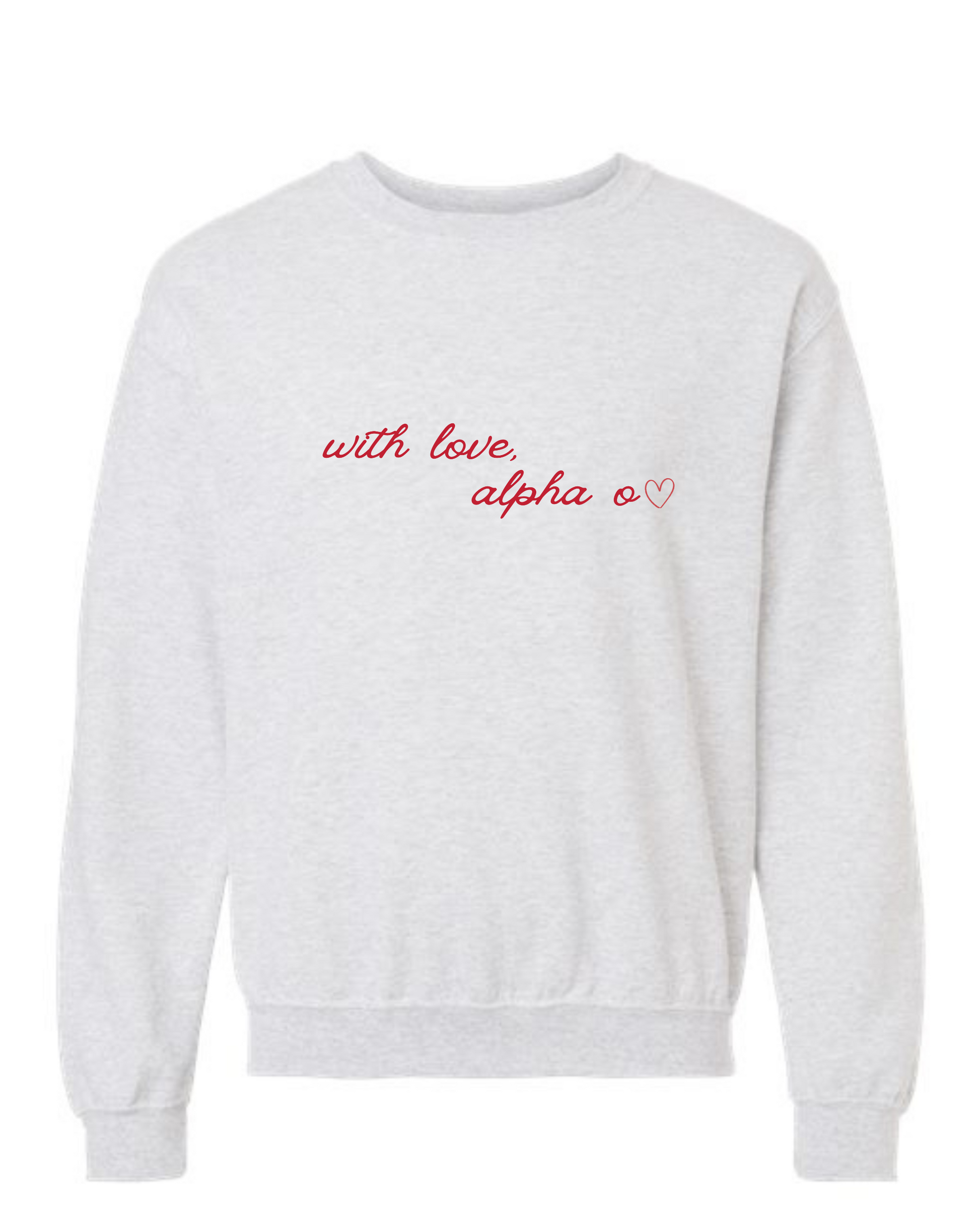 Our AOII With Love Crewneck on a comfy Ash Grey Crewneck!