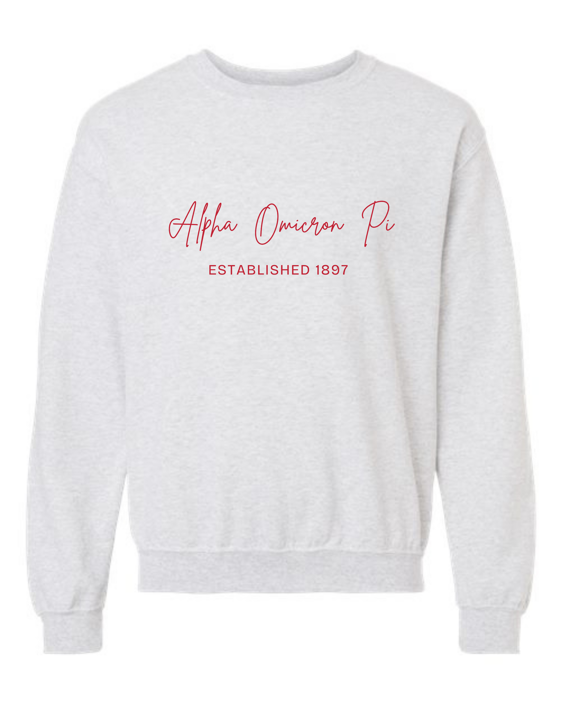 Our AOII Established Sweatshirt in our comfy Ash Grey Crewneck!