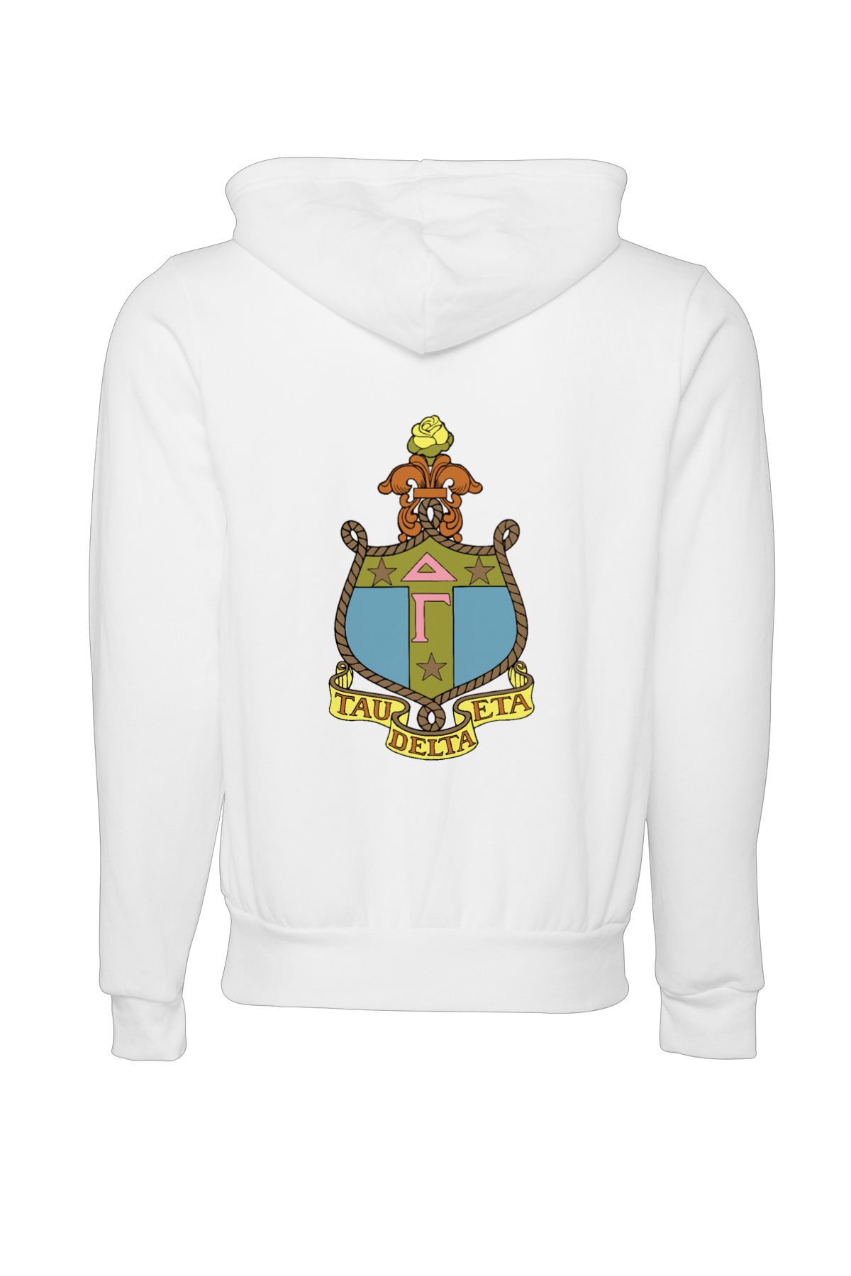 Stay cozy and show off your sorority with our Delta Gamma Crest Hoodie. Made with the official crest, this hoodie is perfect for any occasion. Stay warm while representing your sisterhood.