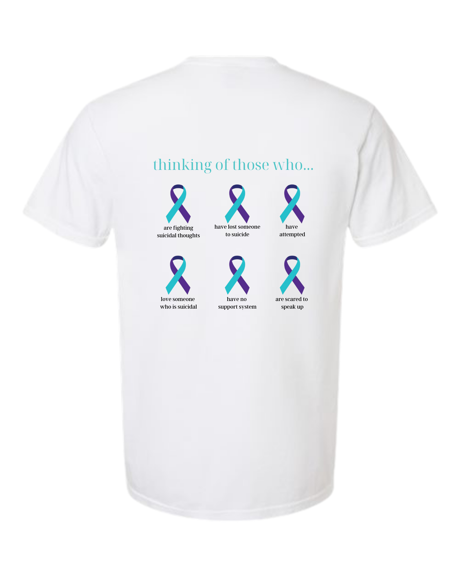 Help us raise awareness and show support for suicide prevention with our White Suicide Awareness T-Shirt. Made with a high-quality and comfortable fabric, this t-shirt serves as a reminder of the importance of mental health. With your purchase, the proceeds will go to support families affected by suicide and mental health resources.