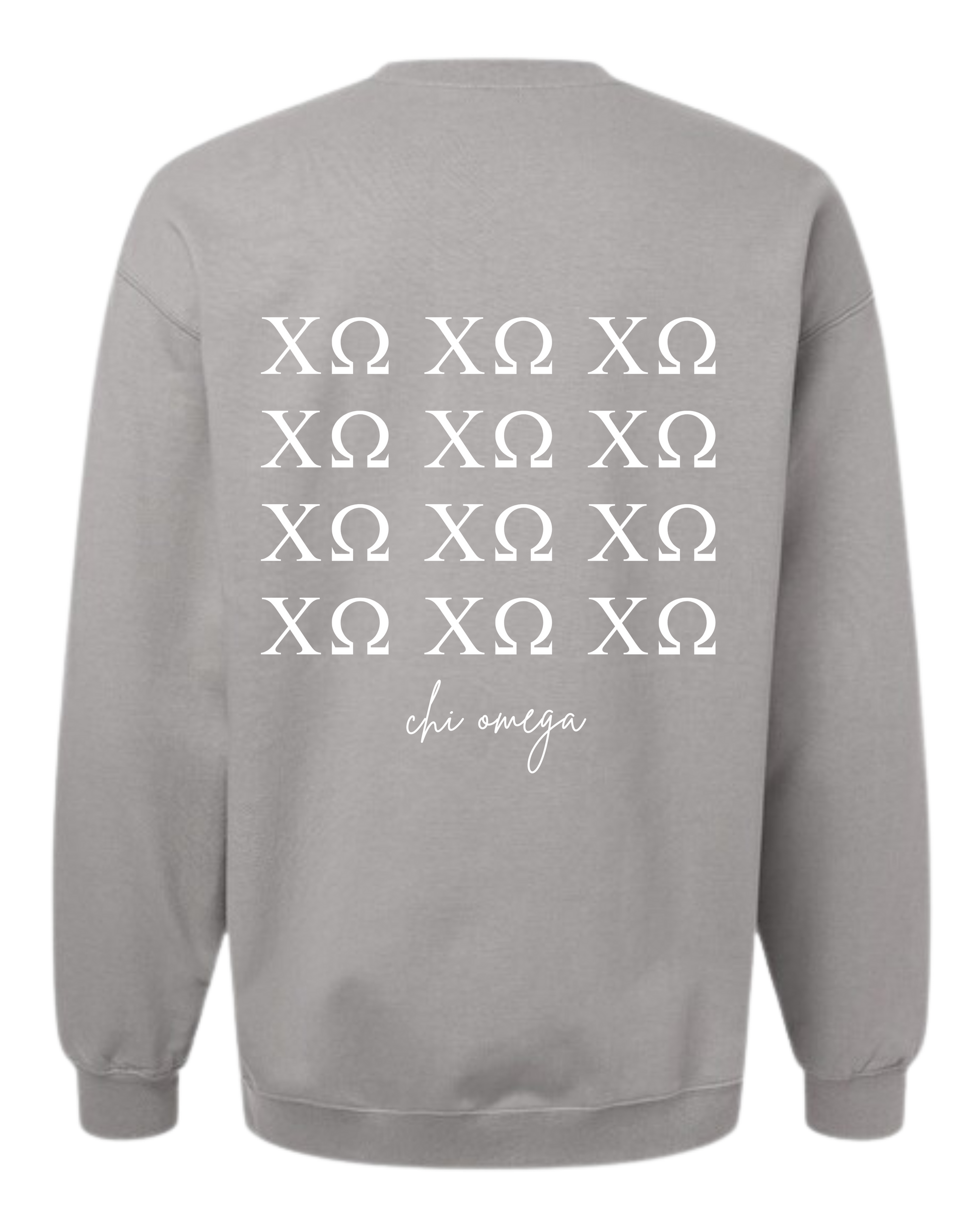 Introducing our new front and back Chi Omega Simple Collection sweatshirt in our gray color. Made with high-quality materials, this sweatshirt is perfect for showing off your Chi O pride while being comfortable and stylish. Stay warm and trendy with this must-have item for any Chi Omega member.