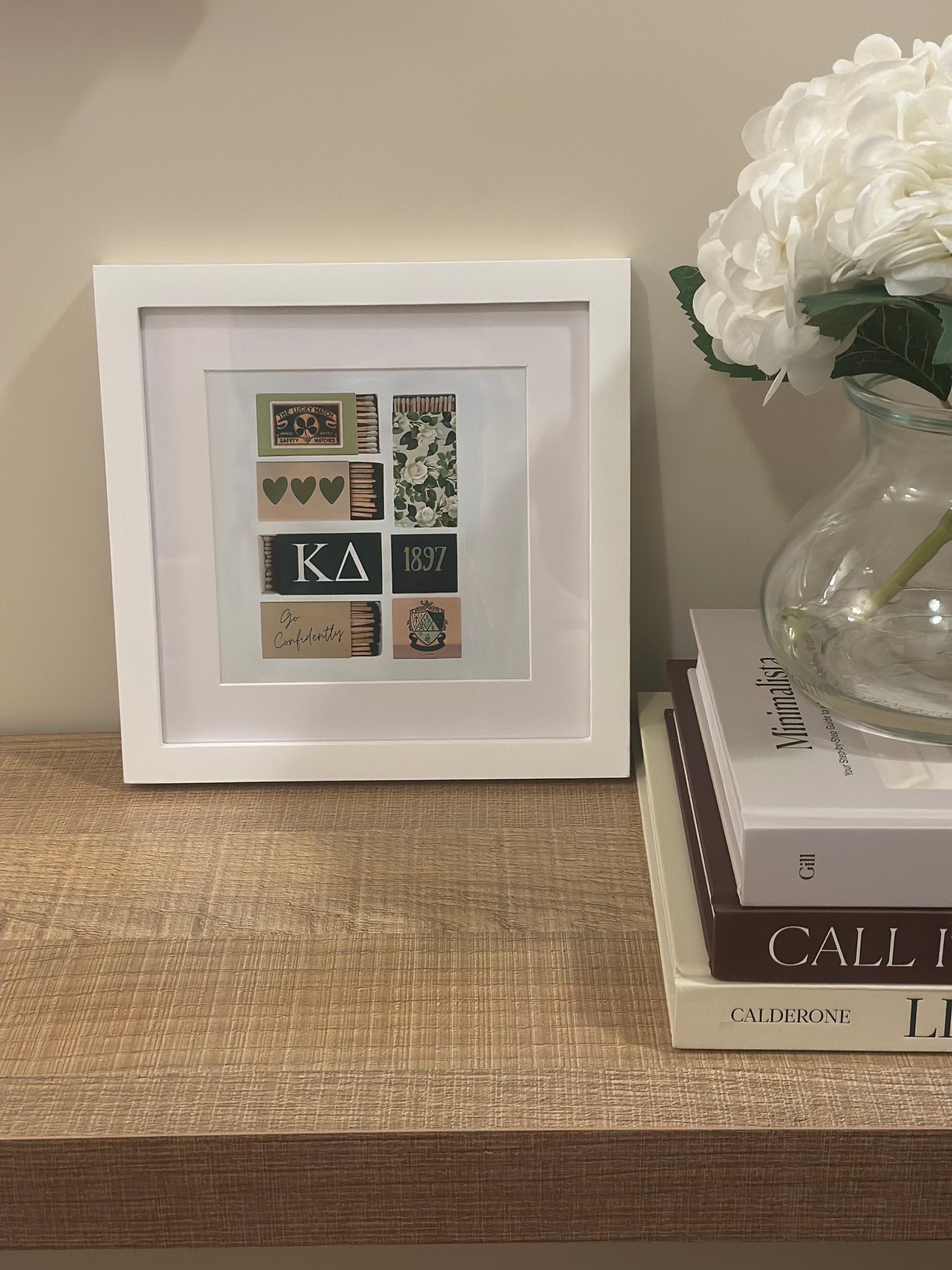 The Kappa Delta Matchbox Print features a distinctive 8x8 frame design that highlights the sorority’s iconic symbols with precision and clarity. Crafted for those who appreciate refined collegiate art, this print offers a balanced blend of tradition and modern aesthetics, making it an ideal piece for display in any Kappa Delta member’s collection or living space. Its compact size ensures versatility, while the expert design captures the essence of the sorority’s heritage.