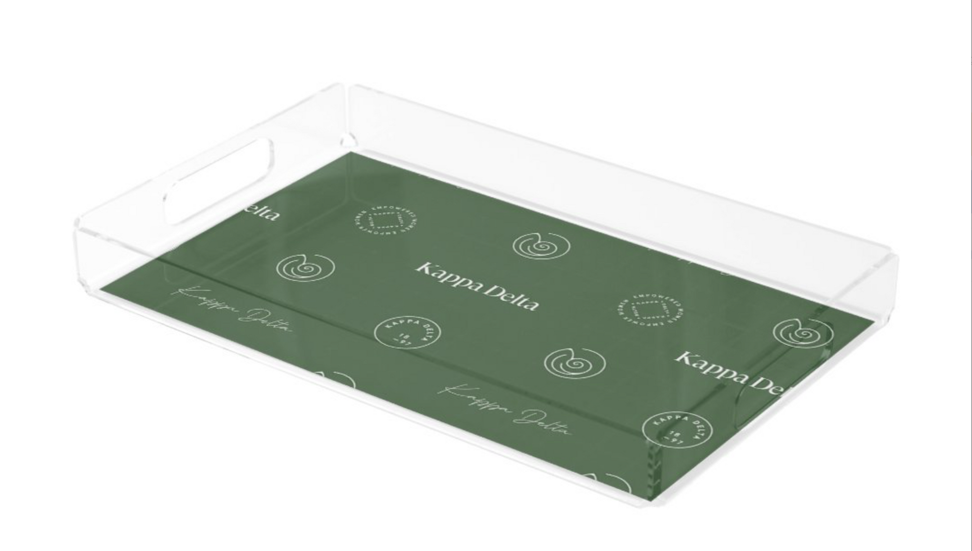 This decorative tray features the iconic Kappa Delta sorority logo, perfect for displaying or organizing small items. Crafted with high-quality materials, this tray adds a touch of sophistication and sisterhood to any room.
