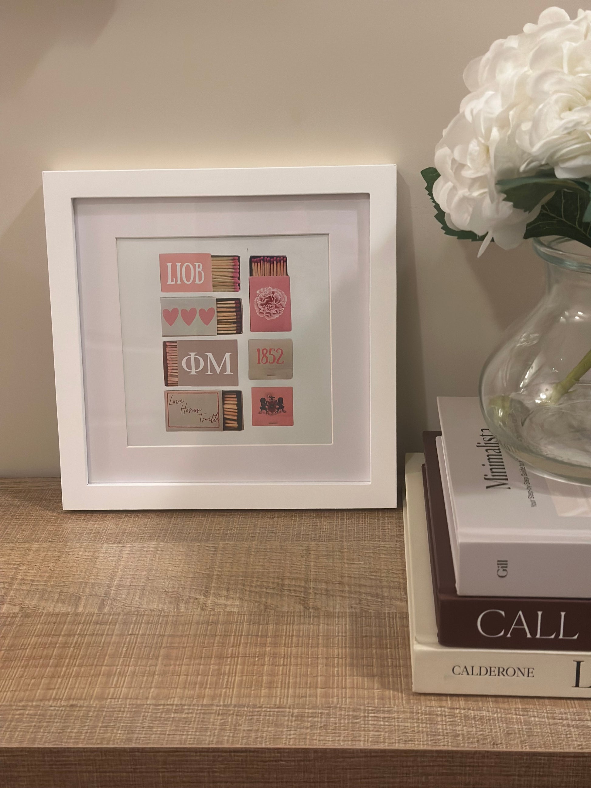 The Phi Mu Matchbox Print features a distinctive 8x8 frame design that highlights the sorority’s iconic symbols with precision and clarity. Crafted for those who appreciate refined collegiate art, this print offers a balanced blend of tradition and modern aesthetics, making it an ideal piece for display in any Phi Mu member’s collection or living space. Its compact size ensures versatility, while the expert design captures the essence of the sorority’s heritage.