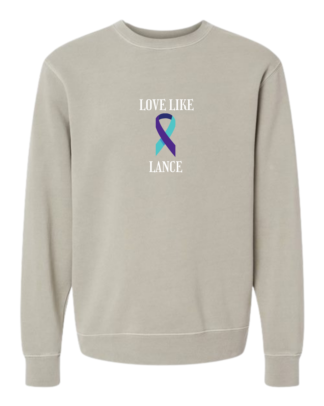 Help us raise awareness and show support for suicide prevention with our Cement color Love Like Lance Suicide Awareness Crewneck. Made with a high-quality and comfortable fabric, this t-shirt serves as a reminder of the importance of mental health. With your purchase, the proceeds will go to support families affected by suicide and mental health resources.