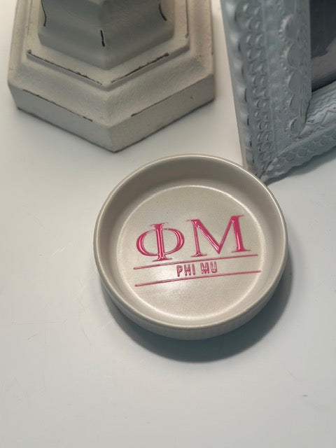 Introducing our Sorority Jewerly Dish, featuring your sorority's logo. Keep your bedside table or bathroom organized with this stylish and functional dish, designed specifically for your jewerly. Show off your sorority letters while keeping your accessories in one convenient place.