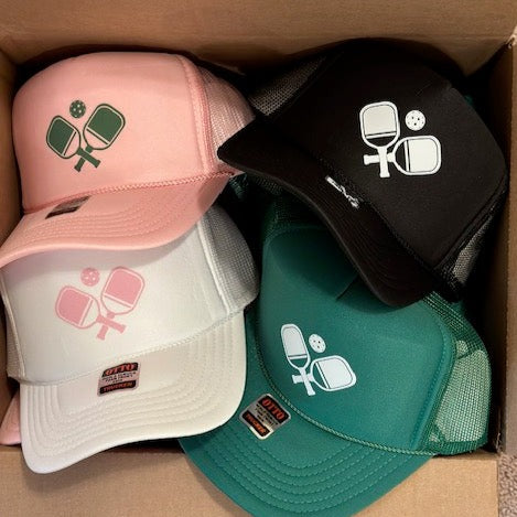 Our favorite Pickleball accessory! The durable fabric and adjustable straps ensure a perfect fit for all sizes. Stay stylish and protected with our Pickleball Trucker Hat!