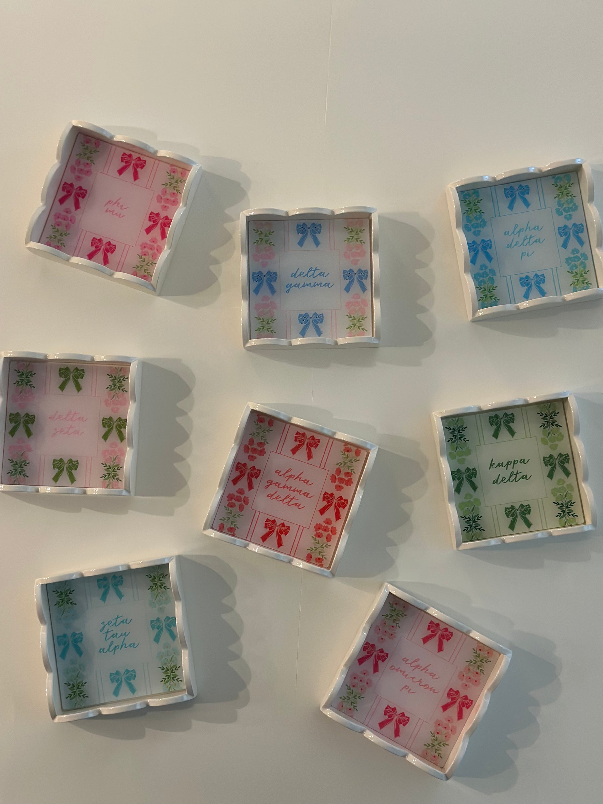 The perfect items to include in your Bid Day Gift! Featuring our Sorority Scalloped Tray!