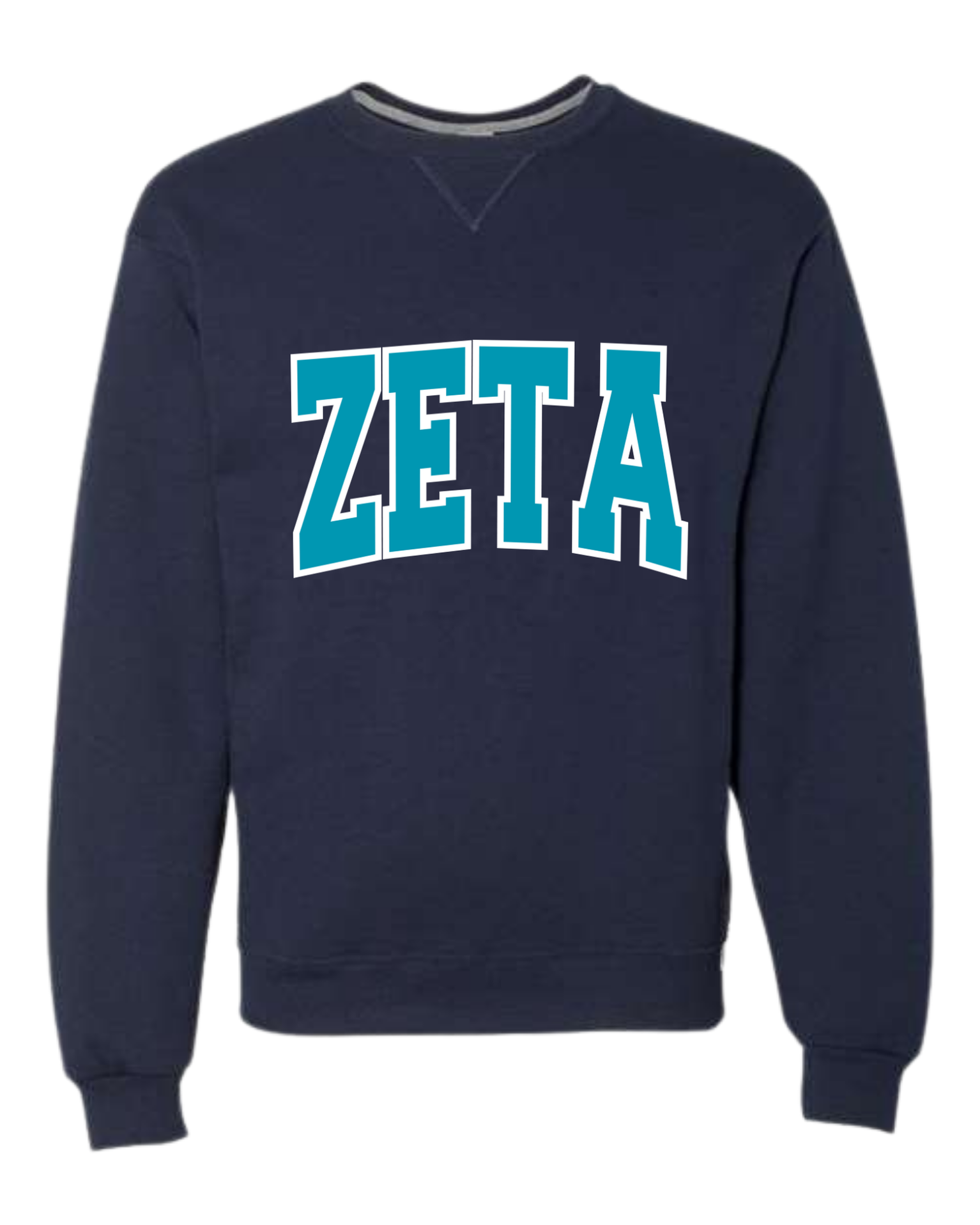 Your go to Zeta Tau Alpha Fall sweatshirt is finally here! This sweatshirt features the Zeta teal color on our navy sweatshirt!