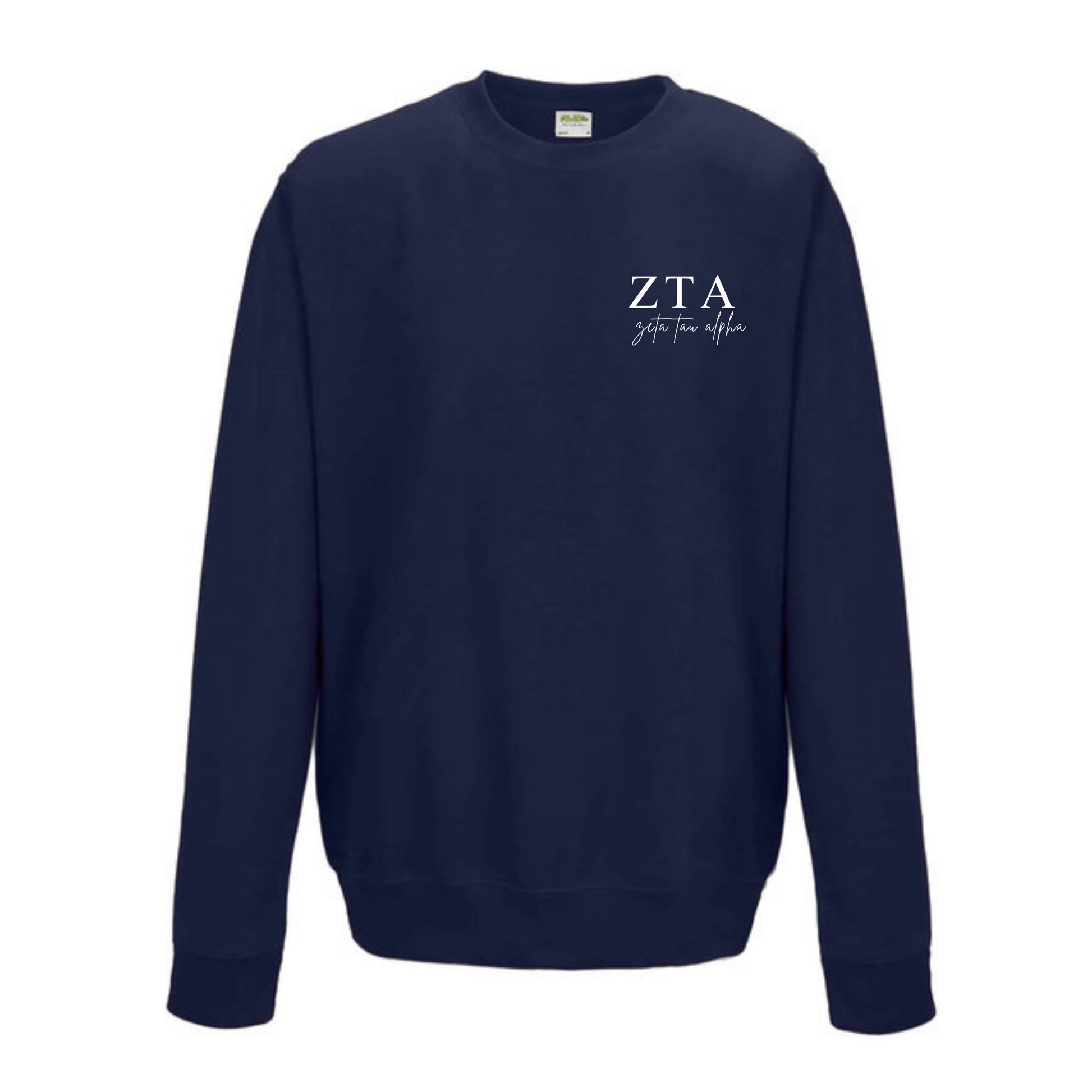 Introducing our new front and back Zeta Tau Alpha Simple Collection sweatshirt. Made with high-quality materials, this sweatshirt is perfect for showing off your Zeta pride while being comfortable and stylish. Stay warm and trendy with this must-have item for any Zeta Tau Alpha member.